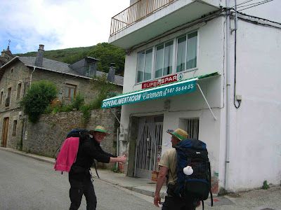 Zur Erklärung dieses Bildes: Als Pilger besitzt man einen Pilgerausweis. Dieser hat mehrere Funktionen. Zum einen billige Unterkünfte in den Pilgerherbergen zu bekommen, aber auch um nachzuweisen, dass man mindestens 100 km zu Fuß gepilgert ist, um in Santiago die Compostela-Urkunde zu erhalten. Hier sieht man Thomas in der Pilgerherberge "Ave Fenix" beim Abstempeln. Dem Besitzer im Hintergrund werden heiligende Kräfte durch Handauflegen nachgesagt.